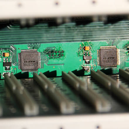 伯奧克新一代研發生產的多個模擬和數字矩陣整合于一個真正模塊化、可擴展、可現場配置的高清混合矩陣。其最大的特點是采用插卡式機箱設計,非常適合于在短的時間內,花費較少的人力成本來安裝新的或替換已有的矩陣切換器板卡。從8、16、17、36、72、最大可配置為 144x144。可選擇HDMI、DVI、VGA&RGB、3G-SDI、CVBS、YPBPR、Fiber、HDBaseT 等接口形式作為輸入輸出,解決了視音頻會議項目中由于視頻信號源種類繁多,各種信號不兼容的困難,并最大程度的節省成本,利于系統升級、擴容及維護。