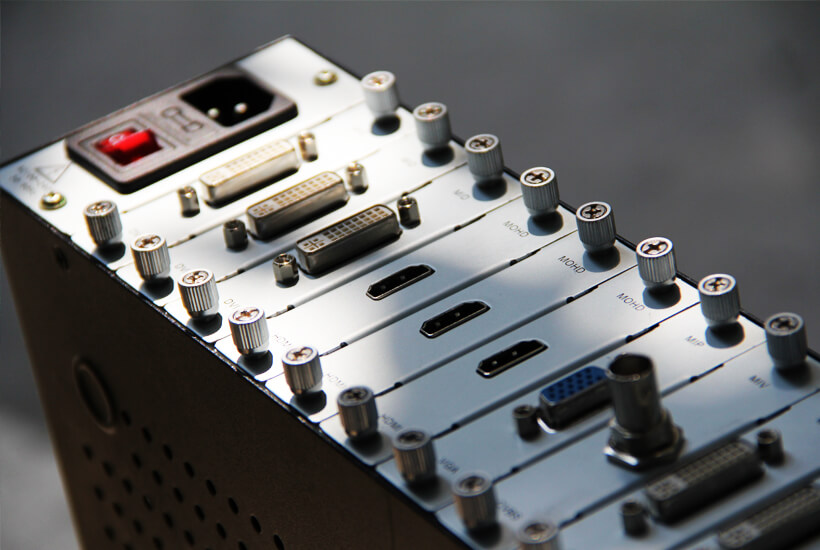 伯奧克高清混合矩陣可配置8X8、16X16、17X17、36X36、72X72、144x144的信號處理。可選擇HDMI、DVI、VGA&RGB、3G-SDI、CVBS、YPBPR、Fiber、HDBaseT 等接口形式作為輸入輸出。